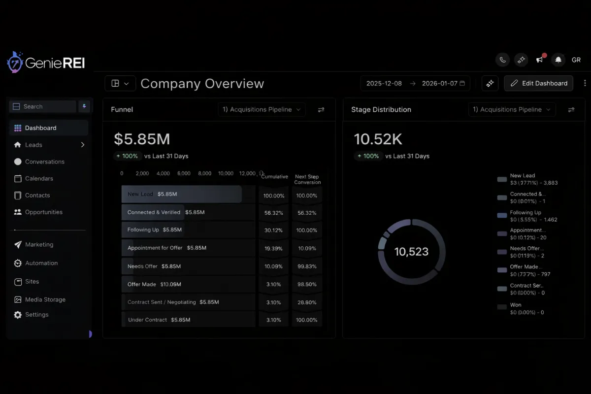 GenieREI quietly handles follow-up, tracking, and deal flow so serious wholesalers can move from $20K–$40K months to $100K months — without managing more tools or manpower.